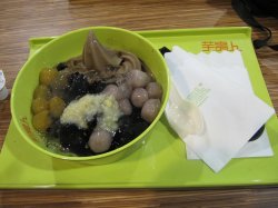 第一次吃芋贵人就在这里吃的~~人还多~~排队的~~我点的冰的~~朋友点的热的~~~冰的有冰激凌~~好几种豆,不过我还是最喜欢丸子~~很Q呀~~~朋友的是红豆汤吧~~水水的~~吃下来还是冰的好吃~~丸子都很Q~~很有嚼劲~~~各色的豆子也不错~~~很酥软了都~~~查看更多