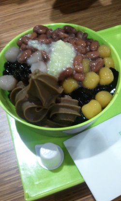 看起来不是很起眼的一家店,但是里面的组合甜品还是受到不少人的青睐。这次选择的是:大芋丸二。除了应该有的东西以外,我又加上了一点仙草和奶油,仙草吃起来滑滑的嫩嫩的感觉,但是那个奶油感觉有点甜了,以后还是建议大家少放一点比较可以吃的出来甜品的原汁原味。查看更多