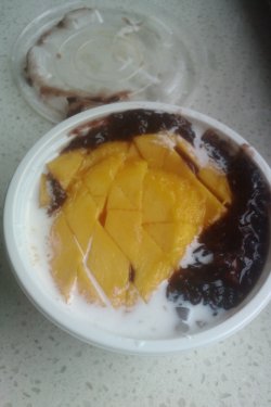 这家其实看中好久了,而且这家也专门做TG的,但是这家主打的是芒果类的甜品,老婆不喜欢吃芒果,所以不会去特地买再特地跑去吃的。。。最近几天家人去青岛了,就我们2个留守,家里是不高兴开货仓的,那就外出觅食了。。。但是晚上要整理东西,不能回去太晚,就选择在崂山路这块吃晚饭了。。。这家的东西当饭后甜点那是再合适不过了,正好现在也有单品的TG,8块8的价格,有3个选择,价格算是挺便宜的了,就不知道味道到底哪能,所以就先买了一份。。。那天吃好对面那家很难吃的谢记后,就来到这家了,这里的店面也实在是小啊,估计外卖生意比较红火,店堂虽然也有座位,不过只有3张桌椅,我们去的时候正好有一张空着。。。先验证,OK了就选择甜品,要了据说很好吃的黑糯米甜甜,这个原价的话是18元。。。东西是现做的,所以要等一会,上桌后发觉卖相还是很好的,黑糯米配上2大片芒果和椰果,底下则是奶味非常浓郁的冰淇淋,4样东西混在一起这么舀上一大勺放在嘴里,非常奇特又非常美味的口感,真心好吃的,而且这款也适合老婆,她只要不舀芒果就行了,她非常喜欢里面的冰淇淋和黑糯米的。。。隔了2天又去那边吃晚饭了,所以又买了个TG,这次要了芒椰黑糯米,这个跟黑糯米甜甜的区别就是,冰淇淋没了,换成了椰汁,而且多了芒果泥。。。老婆就只能舀黑糯米和椰汁来吃,我么还是混着一起吃,味道也非常好,不过口味相对黑糯米甜甜来说就要淡一些了,不过如果是在天气炎热的情况下,吃这款会更适合些。。。这家店其实已经开了很多年头了,小店很不起眼,但是却开到现在,一句话,东西好吃才是王道,这样才会有更多的回头客,个人感觉这里的东西,味道跟那些比较著名的港式甜品店想比,有过之而无不及,而且价格也便宜,TG的话那更是性价比超高了。。。…查看更多