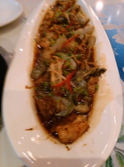 参加那个海参斑一鱼三吃的活动去的,蹭的,之前想的无限高大上啊!下午4点多到的,店里就一桌客人,到我们自己坐下服务员才过来,期间一直站在那里……之后表明来意,然后去隔壁验证,隔壁看着环境更好,不知道为什么没人去,有一对人去了,又给引到我们这里来了服务员没有给上茶水,还是我们主动要的,才给,上菜挺慢的,等了差不多半个多小时,无聊时拿了她家菜单看,菜单弄得像海报一样,说说菜吧!先说鱼,这个深海鱼,鱼皮挺厚的,鱼皮的口感有点像是海参,软糯的那种,肉呢,有些像是瘦肉的感觉,有点劲道的说,刺是软的,感觉像是中间是空空的,看图片这鱼挺丑啊,奇丑!!!!先是一大碗粥,味道偏咸,里面的鱼肉很少,还给了一碟蔬菜,也没说怎么吃,反正我给拌到粥里了然后上来一个砂锅,感觉像是干锅的做法,特别咸,而且很腻,里面放了挺多的洋葱什么的用来解腻的,看来是知道很腻嘛!不过那个皮倒是烧的挺脆的最后一个是豆豉蒸海参斑,用了一个长条的像鱼似的盘子装着,这道菜能充分体会到这个鱼为什么叫“海参斑”了,口感和海参非常像啊!这个味道还算可以,至少不是咸的,不过还是觉得腻啊网上说这个价值400多,到店里一看写着特价98元,差挺多哦!如果这要400多吃这个那真是冤大头,3个人吃不饱不说,而且也不怎么样,就尝个鲜,即使是特价也不值!而且呢,整个下来,除去口感不错外,整体觉得腻,没吃饱倒是被腻得不想再吃了另:免费试吃里,额外收取每人3块钱的餐位费…查看更多
