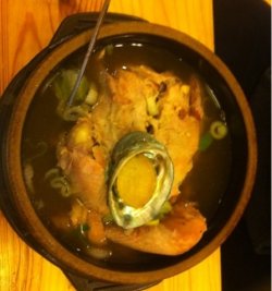 这家饭馆的口味的偏韩国料理的想着去喝参鸡汤补补,他家有各种鸡汤,乌鸡汤还有鲍鱼汤点了一份芝湖参鸡汤,是用大瓷罐盛装的看着还不错也很热乎,应该炖了挺久的味道还算清淡,也不油腻另外他家泡菜饼很好吃,稍微有点辣辣的口感很大一张切成小块,一份挺多的各种小菜装的小碟子看着蛮正宗的口感也可以接受总体还是不错的。查看更多