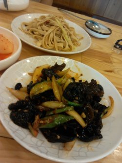 去附近看过电影大概19点半到这里吃鸡汤。人很少,榻榻米上只有2桌人,一边的桌子那块倒有几桌。直接上榻榻米,体验下韩国风情。虽然还不太习惯这么坐着吃,不过觉得挺满意的,因为这是地热的榻榻米,下面是热的,舒服呀,真想躺着睡一觉,哈哈。芝湖参鸡汤(1份,价值55元)味道挺不错的,鸡肉很嫩,煮的很软,很可口,汤有点淡,不过鸡肉蘸着蘸酱菜吃,别有风味,鲜美的很。鸡汤虽淡,但是喝着热汤暖暖的也不错。鸡胸内是粘米饭,里面还有2只人参,应该是那种鲜参,已经闷软如泥了,吃起来软软的糯糯的,有点甜还有点苦,味道很鲜。汤里还有大枣。汤里有股糯米的香,很喜欢。营养参鸡汤(1份,价值68元)和芝湖参鸡汤差不多。拌木耳(1份,价值18元)这个不好,看着挺干扁的木耳,咬起来挺硬的,各牙都,不知道是不是新鲜呢,就吃了2口,扔一边了。拌干豆腐(1份,价值18元)味道还可以,就是挺干的。小菜4种(辣白菜、蘸酱菜、拌蒜、萝卜块)小料 话说我最喜欢韩式的辣白菜和萝卜块了,这里做的尤其鲜美可口,喜欢呀。还有蘸酱,蘸什么都好吃。话说吃到快20点半了,这里竟然上其客来,一会功夫这里竟然全满座了,好多人说着韩国话,不可思议,难道韩国人是晚上8点以后吃晚饭的吗?…查看更多