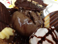 国庆和妈妈一起逛店,中午随便吃吃的。偶们是甜食控,看到店门口的漂亮图片就迈不动腿了。直接进去点的巧克力大不死,吐司是蛮大的,就是等的时间有点长,因为是现烤的关系吧,面包皮烤的蛮好的,中间切的方块不太规整,不过上面的奶油和巧克力酱还有饼干都蛮好吃的,总的来说还是不错的。查看更多