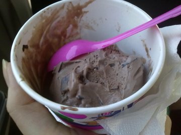 依旧是团购,真的是超划算!!两个杯子,一个大杯一个小杯,但其实球的大小差不了多少,服务也很好~验证了下就拿了两个杯子帮我装了~~一个是无糖摩卡~~味道没有巧克力的浓郁但是也很不错~大杯选了巧克力慕斯!!这个真是超赞!冰激凌很厚实!~味道很浓郁!当中还有巧克力碎~吃完回味很久~~而且一杯的量很大~~虽然原价25元一个球有些贵~不过以后应该还会去吃的~~!!大合照~超赞的冰激凌~~~
