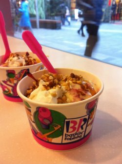 芭斯罗缤里的东西味道不错,我要的是雅摩卡杏仁富滋,冰淇淋球的奶味非常的足,很好吃,添加到里面的东西也挺多的,我比较喜欢外面的蛋筒卷,脆脆的味道也挺好吃的。但是我觉得价格不是很划算,性价比不算太高,路过的时候可以试一试。查看更多