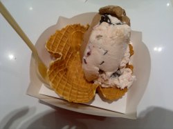 芭琪冰淇淋开在 芭琪可丽饼旁边,冰激凌和可丽饼用的冰激凌是一样的冰激凌搭配的华夫脆也是奶香味很足非常好吃冰激凌口味有很多种,可以先试吃再选择我喜欢吃芒果的,芒果味很香浓,冰激凌质地也很柔软抹茶的也好吃,茶味很正查看更多