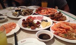 生意好爆啊。周六晚上带着爸爸妈妈超芭菲。人之多。爬爬虾真的是太太太好吃了。只有芭菲才有的木瓜雪蛤也很不错。还有北京烤鸭。此外各种应该有的自助餐品种也是应有尽有。哈根达斯随便吃。只是没有我最爱的提拉米苏的口味。晚上还有人现场表演。最喜欢的还有他们家的肥肠和猪蹄。蘸着干辣椒吃。一晚上都是一股香香的肥肠味道。哈哈。