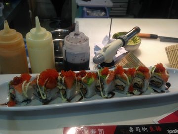 一家不起眼的小店但是味道很好,某天路过点了摩托罗拉寿司加上芥末鱿鱼芥末鱿鱼太美味啦,一点也不比大店差,有点呛,不过呛得很爽摩托罗拉卷现场表演做的,味道很好,沾上酱油加芥末,很美味。总体环境也蛮干净的,走过路过不要错过
