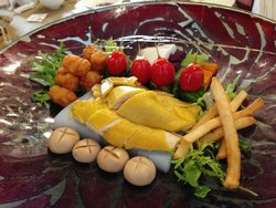 【位置】位置很好交通方便又好找,附近公交地铁都可以直达,簋街美食的名字远播在外地铁五号线北新桥B出口,十字路口的东北角,路北往东走大概50米的距离【环境】简直美好的无法形容,门脸比较小,进到店内才发现别有洞天,是由典型的北京老四合院经过巧妙的改建而成,连院子里的树都很好的保护了起来,还养了几只小动物,雕梁画栋,别具特色【菜品】芝麻香酥薯条,炸薯条外面裹了糖,粘了白芝麻,糖熬的火候到位,色泽好看又不会粘牙,配合着外面那层白芝麻,香甜中又混合了炸薯条的香味蛋黄牛方:蛋黄经过处理没有特别大的腥味了,下面的牛肉每块都很筋道,口感不错蓝莓水果豆泥:外形颜色讨喜,挖开外层的土豆泥,内里有乾坤,配料丰富颜色又好看,孜然香辣薯饼:薯饼切块炸的外酥里嫩,让我想起川菜里面的辣子鸡芥末墩三文鱼:感觉芥末墩的芥末可以再稍微多加一点点,只有淡淡的芥末味,不过这样倒是彰显了三文鱼的甜美,这个菜真是有种奇思妙想的赶脚,本来三文鱼就是配芥末,这次加入了中国元素 ,或者应该说是北京菜融合进了了日本鱼生的元素,不过我好想跟大厨说一声,芥末味还可以再浓郁一点怡园霸王鸡:配料丰富,颜色也很漂亮,盘子好大一个,鸡肉下面垫的凉粉,还有面条和酱汁、外加小萝卜,服务员把面放在上面,浇上酱汁,充分混合搅拌一下就可以吃了踏雪寻梅:逼真的造型,梅花形状的是酥皮点心,熊掌的爪子是大虾仁,白色的是银耳新款八旗小羊排:造型很独特,服务员帮忙把羊排拆开,每根上面都有肉,下面的配菜、薯条和薯饼都是可以吃的,很大一份抓炒大虾球:很赞的大虾球,虾球很大,肉质紧实,外面裹浆炸过,酸甜口,很好吃松鼠桂鱼:松鼠桂鱼的造型各家大都相同,酸甜口,大家都爱吃,上面撒了豌豆和苹果粒麻小蒜蓉海鲜汇:内容很丰富的一道菜,有小龙虾,就是菜名中的麻小,还有大侠、蛤蜊、螃蟹等等海鲜,真正的一锅烩,配了薯条和细长的块状的马铃薯,汤的味道很鲜香,马铃薯也吸收了海鲜的鲜味…查看更多