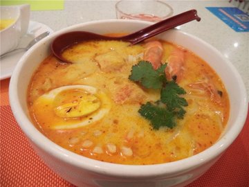 这家跟新街口是一家,菜品一样的。我还是喜欢吃叻沙,照例点这个。人不多,上菜巨快。5分钟就端上来了。一吃感觉味道好淡,于是跟店员说了一声,又帮我下去加工了一下。再上来的味道就对了,叻沙这个东西口味很难形容,很别致,但是我就爱吃这口~有活动价格时来花拉公园吃一份比较轻松~里面的虾仁新鲜饱满,目鱼卷也好吃,其他还有鱼豆腐,豆芽,鸡蛋,多多的米粉~木瓜排骨汤。价格16.小小一碗,里面有4块木瓜,3块排骨,汤色类似肉骨茶,黑黑的排骨好吃,肉嫩又入味,汤是咸的,有点肉骨茶风味的药膳味道,所以汤比较不能喝。。木瓜也是咸甜交加的味道,有点古怪,但是不难吃,吃得下去~