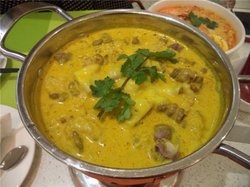 咖喱芝士肥牛锅,我觉得没有我想象的好吃,芝士味道很不浓。。后来好朋友要了一碗米饭拌汤吃,我觉得这个汤这次咸了,明明没煮一会我就把火关了,还是偏咸里面的芋头超好吃,但是锅底浅,芋头和肥牛好少椰汁杂粮,32还是36好朋友很喜欢吃,强烈要求点的杂粮就是芋头和南瓜。确实很好吃,椰汁不是很甜,芋头超好吃,南瓜也大块甜糯。很棒的一道甜品