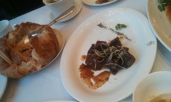比較偏愛的那些點心~酱萝卜清爽爽口,開胃小菜~很是不錯~還有本帮熏鱼,吃口脆脆的香香的,內在的魚肉又細質~龜靈膏,甜品冰冰涼涼,正好甜蜜蜜的感覺,混搭鹹類的點心甚好~洛還點了芒果布丁,蠻不錯的,雖然味道不是很濃郁,但顯得很清新的口感~小餛飩也不錯,皮子很有韌性,星子很飽滿~還有洛最愛的蝦餃皇,個頭適中,蝦仁大只Q彈~仍舊是好味~叉燒酥,外層香酥,內在叉燒滿滿,很香濃可口的味道~還有他們家的酥皮蛋撻也是洛所喜愛的,特別是剛剛端上桌要馬上品嘗趁熱吃,特別贊!還點了魚片粥,洛沒品嘗到,估計也是蠻嗲的~洛喝了牛肉羹,其實就是牛肉末+雞蛋花的湯羹!服務也比較周到,上菜速度還行吧~查看更多