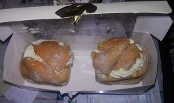 长的有那么点点像泡芙。但是吃口是蛋糕来着。。9.9一盒三个。上次我买了一盒给我老爸,然后我老公竟然直接把他们都消灭了。一个都没有留给我老妈。然后我为了弥补我老公。又重新给我老妈买了一盒,虽然只有2个了。因为我偷偷的吃了一个。嘻嘻。蛋糕比较软。不过奶油还行。价格也不算贵。随便吃吃吧。查看更多
