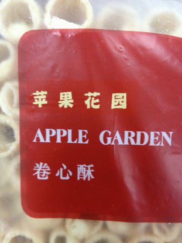 分店蛮多的。记得以前叫苹果园的。现在基本全部变成苹果花园了呢。LOGO也从黄色变成红色了。这么多年最喜欢的还是他家的蛋卷了。最喜欢巧克力口味的,外面是涂层的巧克力,很厚一层的。以前是12元一包。现在是称分量了。