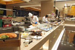 曾幾何時,會展的自助餐,是城中追捧的目標,以優質食材,上佳的環境,令人去而復返,但時移世易,坊間不斷有對手出現,會展似乎已漸為人淡忘。近月會展有新攪作,銳意重新打造,的確有耳目一新的感覺。走過一小段長廊,牆上掛滿了由殘障人士所繪的油畫或工藝品,增添了文化氣息,與及令相關人士重拾自信。迎面而來,是獨立的Seafood Station,最吸「睛」的當然是凍食鮑魚,更是無限量供應;基本的阿拉斯加蟹腳、藍貝、海蝦、花蛤及翡翠螺,不單毫無討厭的雪味,refill的速度又夠快,所以一直都沒有人龍,亦是buffet的回本位。另一個吧檯是凍肉沙律位,煙火雞沙律、泰式燒牛肉沙律及海鮮沙律,都是即場製作,相當認真,海鮮沙律都忍不住吃了兩round。由於會展在天台自設種植區,餐廳內的香草,全都是自家出品,就連烤醃有機菜都以客人健康為主,很難得。就在大堂中央位置,以壽司刺身吧最吸引,肥大肉厚的日本帶子源源不絕;清脆爽口的象拔蚌,都是一般自助餐中罕有,結果令三文魚、甜蝦及吞拿魚等常客,通通都成了配角,更何況轉角處的壽司?簡直是給遺忘了的一群。熱葷類對於在下而言是可有可無,但面對冬菇花膠鴨掌煲又真的忍不住手,用料已經認真,炆得夠稔入味,的確少見。清蒸石班又是另一選擇,不過今次略嫌過了火,肉質有點韌,還是可以有改進的空間。燒味部可以有片皮鴨提供,又是一個特別的賣點。日式鐡板燒是在下最愛流連的地下,原隻大蝦足六七吋長,肉質爽口彈牙,香味四溢,全晚供應,但竟然沒有人龍,因為實在有太多亮點。同一個區域,可以有A5飛驆牛壽喜鍋任食,夠誇張了吧?至於天婦羅之類,又是成了陪襯品,不過總會有知音人。望望醉鮑魚沙律、海葡萄沙律及海螺沙葛沙律,都是要忍口,但見到龍蝦喬麥麵之後,還是取了一份試試,不俗。以前對扒類是無肉不歡,但近年已選向精緻為主,就算是香草燒羊腿、牛肩肉及鴨肝,都只能跟朋友share,味道還是不錯,只是鴨肝煎得過火,少了一份豐腴甘香,入口即化的口感。大家會看到兩部自助烤海鮮及蔬菜機,原來是科技大學研發的產物,可以測出食物的品質,從而自行調節溫度,吃了一串烤蝦,受熱很平均,不帶半點焦位,有水準之餘,又不用另花人手照顧,是一部win win的機器。湯先後發現了三種,不如一次過講。即煮海龍皇湯當然是不二之選,配料以原隻小鮑魚開始,配合原粒帶子及鱸魚柳,加上魷魚及青口,夠豐富了吧?中湯以時令為主,不時作出改動,今次是冬瓜薏米肉排湯,很清潤的感覺;而西湯是意大利雜菜湯,也好,喜歡這種酸甜味;結果是三款湯,各喝了兩碗,誇張得難以置信。押尾的甜品站,根本是女孩子的專櫃,整晚都給人包圍,其中最有看頭的,莫過於液態氮水果球,賣相已經爆燈,用超低溫液態氮倒落水果球,大量白絲絲氣體湧出,試了熱情果及Raspberry,酸甜夾雜,把味蕾都清洗了。自製甜品併盤是燕液椰汁鮮奶、Candy Nappages、香草橄欖蛋糕,再加三杯Movenpick杯裝雪糕,可說是近年最令人心悅誠服的自助餐。近日有獅子銀行信用卡優惠,星期一至四有85折,而白金卡是星期一至日都有85折,難怪已差不多預訂至9月中,老實說,在下一定再走返轉。最後吃著店方送來的雙黃白蓮蓉月餅,賣相很環保,個人非常欣賞,而且味道跟傳統名店比不落下風,不錯。…查看更多