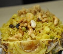 这家餐厅之前开在东方广场很多年,其他的菜无功无过,但菠萝饭是必须点的,用料实在,特别好吃。米粒事先用椰浆泡发一下会更妙,炒饭里的料也很多,尤其是腰果画龙点睛,混在饭里十分好味!菠萝绝对不用罐头糊弄,是新鲜的菠萝块(注意不是粒),另外糯米也很重要,必须是南方长糯米,而不是北方短糯米,晶莹剔透,怎一个好吃!查看更多
