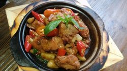暗暗的灯光,总感觉像女主人淡淡的忧思,除开里面的台位,还在外面也摆了二桌,非常文艺气质的餐厅。石锅鲈鱼还不错,鱼肉还满嫩的。菜的口味偏重,不过并不像上海菜的风味。