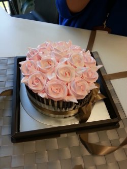 和老公结婚一周年纪念日,从恋爱到结婚,他就在求婚的时候送过99朵玫瑰,再也没有在家里闻到玫瑰香。上周和老公兜兜龙之梦,在B2,经过莉莲的时候想吃蛋挞,就让老公进去帮我买。老公突然指着莉莲里面一款玫瑰花蛋糕说:老婆送你一个玫瑰花蛋糕吧。就这样,我欢天喜地的抱着个玫瑰花蛋糕回去了。拆开包装,真是好精致,粉色的玫瑰花如真花一般绚烂的盛开在我们面前,舍不得切开,舍不得破坏这样的美丽。蛋糕外表绝对可以打5分。入口细腻绵密,整就一个软绵绵了得啊。里面蛋糕还混着蓝莓干。一口下去充满惊喜。口感可以打4分。价位不算贵,毕竟现在各种蛋糕店在上海是雨后春笋般冒起,这玫瑰花蛋糕将用料/口感/价格/造型结合的如此好。赞一个!是情侣爱人们过纪念日,情人节等不二选择查看更多