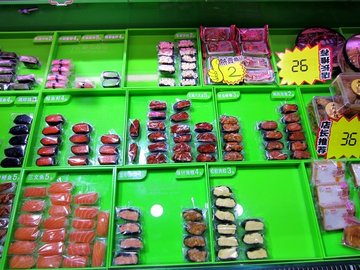 感覺是一家韓式壽司店,賣成品壽司,也很新鮮,品種有三文魚、芝麻八爪魚、鯡魚籽、魷魚嘟嘟、海藻、泡菜、玉米等,口味較日式壽司清淡些,飯團松軟。