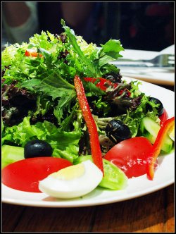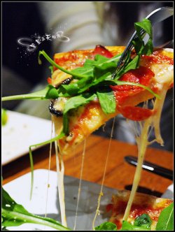 烟熏三文鱼沙拉,清新爽口的蔬菜,配上浓郁的色拉酱,绝顶美味。提拉米苏,巧克力般又不是巧克力,软软酥松的蛋糕,掺咋着一层又一层的提拉米苏酱,太好吃了!红酒点了一款产自美国蒙特利的干红,很好喝的干红酒,不是很酸,酸甜适中,经典的品牌,甘醇的果酒!推荐菜:wine,提拉米苏,pizza餐厅氛围:朋友聚餐,休闲小憩,随便吃吃餐厅特色:无线上网,有露天位查看更多