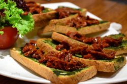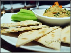 初闻萄醉一词,是从姐妹那里听说的,感觉就很有意境。萄醉——陶醉!采用谐音方式,既很好的表达了其主打葡萄酒的特色,又让人听后就记忆深刻,想必老板一定是一个深谙中国文化又喜欢葡萄酒的地道中国人吧!很有幸的一次机会,在姐妹们的邀请下,我跟随她们一起来到了萄醉。在这里,我见识了葡萄酒柜的雄壮,而且还有幸碰到正好在店里的老板。老板很热情地和我们交谈,简短的谈话得知老板原来是美籍华人,生长在美国,长大后出于机缘回国,之后便开始学习母语然后创业。我心中不由佩服,对于一个后天回国自学母语的人能把店名起得那么有意境,可以看出他的努力。这次聚餐主要是以简餐为主,姐妹几个还配了一瓶葡萄干红。酒香醇厚,色泽鲜明,高脚杯在手,一摇一晃之间,已然陶醉!店里的简餐是意式简餐,意式简餐最有名的还是披萨,不过我们今天并不点披萨,倒是对店里的其它几款产起了兴趣。鹰嘴豆酱及自制皮塔面包,初还以为是新疆的瓤饼。嚼起来口感也像,不同在于鹰嘴酱的调味,以及胡萝卜黄瓜条的陪衬,蔬菜陪衬略显爽口。点了款蔬菜色拉,据说是店里的招牌,名字挺长,没记住。吃起来清爽,汁水也蛮多的,但还不足以止渴,呵呵,这时候葡萄酒肯定派上用场,再说,葡萄酒肯定是今晚的主角!面包配罗勒酱及油浸干番茄,第一次吃番茄干,感觉肉质很有嚼劲,番茄自身带有的酸味融合了罗勒酱的美味,值得一试!简餐、简餐,就是一种简单、便捷的形式;店家采用的是开放式厨房,就连厨房都是简洁而大气!查看更多
