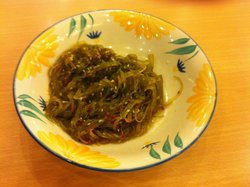 点了裙带菜,卖相不好,不是绿油油的裙带菜,而是有点发黄的,但是味道不错,有点酸酸的,有点辣辣的,味道比较平衡,不会很重,可以解油腻和开胃。口感脆脆的,而且很爽滑。查看更多