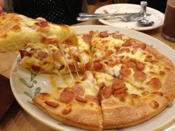萨莉亚的性价比一直都蛮高的,这次去的有点晚了,人也比较少,没怎么等位就进去了。这次去点了一份意面和一份水果布丁,味道还挺不错的。里面酒红鸡翅只要9元5个,味道也很不错,没有烤焦,皮脆脆的,里面的肉很香,一直和朋友经常去吃。蒜香鸡排味道很浓,和外面不一样,非常入味,毎次去必点的。披萨饼很大,料很足,沙拉也就一般,好像没怎么切就拿上来了。。。。。。他们家的菜味道都很赞的,价格还是非常划算的~就是环境不怎么好,闹腾腾的,而且地上有点油~查看更多