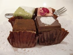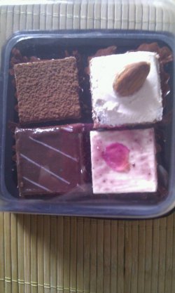 开在淮海路力宝广场B1楼,装修很有特色,里面的蛋糕种类很丰富,款式也很多,价格稍微偏高。点了这种4块小蛋糕大小拼成的,里面有四种口味,我点的是巧克力味,榛果的,黑森林蛋糕每块都很小,做的很精致,口味也非常不错,蛋糕一点不腻,口味非常浓郁查看更多