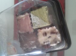 前段时间参加卡顿尔翻糖艺术蛋糕微博的活动,凭验证码可以去领一块蛋糕,其实是4小块的,不过拿到家已经有点化掉了,这个是冰激凌蛋糕呢,味道倒是挺好的,不过实在是小了点啊,一口一个就吃没了~如果以后搞活动能送一款大点的就好了呢~查看更多