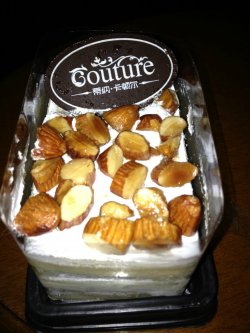 慕名而去的一家店,在淮海路上。冲着马卡龙去的,结果只能买大礼盒,想想自己吃,也就没买。换了款酸奶优格蛋糕。首先,他们家店有很多模型的翻糖蛋糕,样子都很漂亮,会让人感觉无从下口。店里的布置也很漂亮,很有宫廷范。点的这款蛋糕,价格不贵,20元。味道确很赞,糖杏仁很香。里面的奶油很顺滑,一点都不腻。蛋糕的口感也很好,底部还有水果,很好吃。以后生日的首选蛋糕呀。查看更多