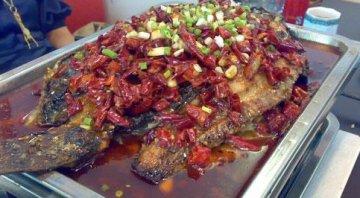 在朝阳区 定福庄东街2号(中国传媒大学西门对面),店子真心不大,灯光还调的昏暗暗的,装饰的书架感觉还有点儿书卷气。这个店就是各种烤鱼各种辣。大爱怪味鱼,首先鱼就很大,鱼肉很嫩,味道是有点辣,有点儿麻,有点儿五香,就是各种味道集合起来又不会觉得冲突,很神奇。凉菜可以点蕨根粉,酸酸辣辣的,粉很劲道,有嚼头,又开胃,又可以打发时间。