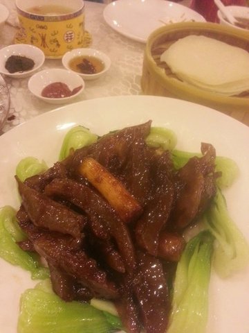 蓉蓉酒家的烤羊腿我挺喜欢吃的,羊腿是当场烤熟的,肉质很韧,羊肉就是这个感觉,内里的肉不仅细嫩,而且水分足的很。宫保鸡丁也还行,下饭嘛,鸡肉粒挺瓷实的,吃着很软柔,没有太多的辣味,豆瓣酱都加的不多,所以显得比较清亮一些,青瓜粒很清爽。红烧肘子的分量是最大的竞争力,不过觉得应该多炖一会,外皮显得还有点硬,达不到一刀划开的水平的。…查看更多