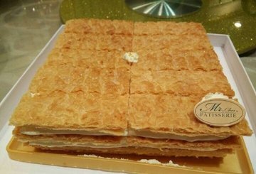 难得吃了一次蔡嘉,这家店的档次还真心不低,服务员都像是一个个绅士一样的,非常有气派的感觉,拿破仑超级美味啊,价格198元,层次感很强哦,酥饼做的不油腻,味道有一点甜,奶油所占面积很大,能第一时间感受到奶油的清甜味道,结合酥饼吃起来就是味道酥香的那种。
