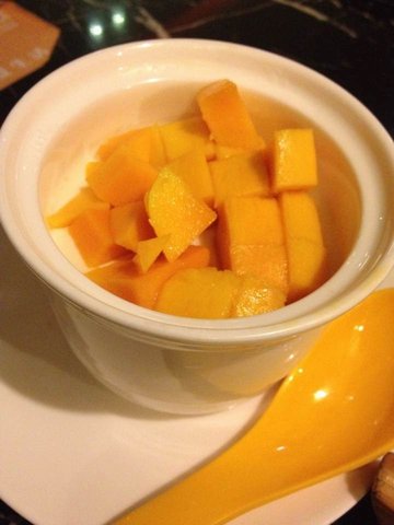 蕉叶料理时尚餐厅的环境很小资,卫生干净,吃饭也很安静,服务也不错,价格贵。吃过了辣辣的泰国菜,上点甜点吃吃清清喉咙。芒果布丁还是不错的,上面铺着芒果块很甜,下面是滑溜溜的布丁,入口滑嫩,带着奶香的甜味。冰过的感觉更爽口。…查看更多