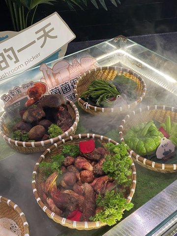 土雞菌湯鍋 / 高原品質野生菌三拼 / 見手青 / 現燜宣威火腿牛肝菌燜飯 / 招牌M9雪花和牛 / 雞樅菌