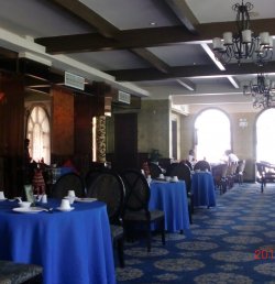 店门前的招牌小但很有特点,蓝色的字,“乐”写得较为特别。座落在老洋房里,看介绍,建于上世纪三十年代,是某实业家的产业。老泮房的外观很普通,不过前面一大片草坪,绿绿的,很养眼。还有一棵很大的槐树,挂着许多红色的小灯笼。在这里办婚宴的人不少。环境与我想象的有点差别,没有想象中那么好。共有三层楼。一楼是散座。地下铺着蓝色印花的地毯。时间久了,不为人注意的地方有些破了。对着草坪的一面有十来扇大大的落地窗。中午的阳光透过窗纱洒进室内,想来冬日里喝茶,无论是坐在里面还是草坪边上都是很惬意的。桌椅布置得很宽松。蓝色的台布,桌子上的蜡烛罩子很漂亮,椅子上有柔软的靠垫。餐具上有好看的花纹。对着门的小厅中灯光很暗,点着蜡烛,是供情侣用的吧。二楼、三楼是包房。过道的灯光较暗、较红,有一种脂粉的香味,与金凤凰很相似。二楼外面的露台上也可进餐,有月光的晚上不知是什么情景?整个餐厅的风格较具老上海的风情,不停地播放着年代较久的爵士风格的英文歌曲。老式的柜子、雕花木椅、古典样式的沙发、椅子,别致的吊灯,还有古铜色的风扇,给人一种时光倒流的感觉。不是周末,中午的大厅就二、三桌客人。包房有几桌。所以感觉到很安静的氛围。餐厅主要做创意菜,有几个菜像干烧朗姆银鳕鱼、鲟鱼饺和榴莲酥被评为徐汇区创意菜点。标榜是鹅肝专门店,价格不菲。其余的菜式都较贵。有些菜分为一例或一位,价格有所不同。干烧朗姆银鳕鱼:端上来后,服务员浇上朗姆酒,用火点着,至酒烧尽。银鳕鱼一小块,上面浇上特别的料汁,有姜、蒜、葱、肉丁、仙贝等。银鳕鱼的口感一般,稍微老了些。味道很好,酸、甜、辣、咸都有,还有隐约的酒味。将料汁同饭拌着吃,很开胃。鹅肝豆腐:这个很赞的。盛器有淡绿色的花纹,很漂亮。采用纸火锅的形式,点的火刚好使菜沸腾后就没有了。份量不少,上面洒了一些黄色菊花瓣和橙红色鱼子酱,好看又可以去腥。鹅肝很嫩,它的一点点腥味我很喜欢,称之为“腥香”,真是很好吃。豆腐也很嫩滑,味道很香。吃一口到嘴里,口感是软滑中带有鱼子酱的一点脆,很有层次。味道很鲜香,稍微有些腻。奇味私房牛仔粒:量也不少,牛肉块好多,下面衬少许炸豆腐,上面洒一些松子。没觉得味道有多奇怪。牛肉非常嫩,很入味,有一点点辣味和酱香。炸豆腐则像是卤豆腐,有些咸甜味。总体感觉还不错。香芒美人鱼:就是香芒布丁,只是做成了鱼的形状。不像美人鱼,倒是一条很可爱的鱼,睁着无辜的双眼,真的令人不忍心下手。最后还是得吃吧。口感非常软滑,凉凉的。有很浓的芒果味和奶香味。很好吃。米饭:价格同我猜的一样。盛在小的蒸笼里,中间有少许红豆。是香米做的,有些香味,口感软糯。还不错。服务员会一般站在远处不打搅客人。上菜的和点单的服务员不同。上菜的着紫色制服,点单和买单的都穿黑色制服。都很有礼貌,有问题时会笑脸相迎。这里的菜式做得不错,但也谈不上很惊艳。吃的是环境啊!…查看更多