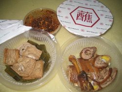 这次蘸不绝口的体验之旅有点波折,之前4号晚上正好离这边比较近,大概是七点多点到店,结果发现只有冷吃牛肉和鸡肝珺肝了,由于很想吃他们的招牌卤香沾水鸡,于是后面周日冒着下雨从东南三环外又驱车专门过来一次,为了吃各种动力十足啊到店大概是中午12点多的样子,所有样式卤菜都有,点了冷吃牛肉,冷吃兔,招牌卤香沾水鸡,素菜,还加了一份他们特制的麻辣萝卜干,帅哥店员手脚麻利的凑了150块钱的菜,补了1.5元的差头,随袋加了一份干海椒碟和他们特制的鸡肉沾水,都是分开专门小碟子和小瓶子装的,可以看到店家在细节上的用心和诚意。结果是收获了一个大袋子的美食浩浩荡荡满载而归啦~~~~~~还是来说说吃的东西本身吧招牌卤香蘸水鸡:鸡肉口感偏干,卤的挺入味,我个人觉得这个鸡肉可以不用蘸着沾水吃也很香,可能因为口味淡吧,那个蘸水我吃了两口整个嘴唇都彻底麻掉了,对我来讲简直是太重口味冷吃兔、冷吃牛肉:这两个比较推荐,辣味适中,没有蘸水料辣的那么暴躁,口感干香,吃起来很赶口,还吃到了好几块橘皮,牛肉里面的海椒段好多阿感觉和肉的数量差不多了,就92一斤的价格来说吧,这种海椒牛肉一起称的模式还是贵了。。。素菜:有卤香藕、海带和豆腐干,这三个卤菜本身的味道是非常清淡的,可以说没什么味道,搭配重口味的牛肉兔子再好不过了他们盒装好的萝卜干:一份好像是七元,味道也是很重口的,麻辣味十足,下饭必备啊作为一家新开的卤菜店,在成都这个吃货聚集的地方要从激烈的竞争中存在下去也还是挺不容易的,希望店家保持菜品的定位、口味和品质感,多多开拓菜品的种类,能够再稍微在价格上给消费者一些更大的优惠吧!…查看更多