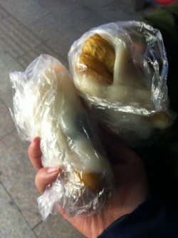 慕名而去的 一直有听说这家的糕团很好吃由于住的比较远啦 所以趁着去龙之梦的机会直接奔向糕团店啦买了几个品种哎哟 看着各个都很好吃的样子当然不能错过最出名的年糕团有甜有咸的 咸的是包着油条的和咸菜 甜的的包着油条和芝麻 从视觉上来说我喜欢咸的 就是咸菜感觉多了点 味道有点重从口感上来说我更喜欢甜的 芝麻油条包在一起 别有一番风味呀年糕相当的香糯 很软 当场做的 到手后还热乎乎的呢4元一个价格还算公道呢 一下子买了四个哈哈 带回家给爸妈尝尝呢