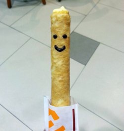 很小的蛋卷,纯粹是被橱窗的展示吸引的,样子真心好可爱,卡哇伊,特别吸引女生有木有。买了一根,18个大洋,小心疼,很细的一根蛋卷哦,没太多特别,有点类似波力蛋卷吧,里面有酱,但是那个酱很甜,所以感觉味道很一般,蛋卷没什么香味,奶味也不足,这个价格实在是略坑爹了,好在服务非常到位,而且蛋卷很萌,倒是非常适合拍照,喜欢凹造型的妹子可以买一根玩玩,如果说是为了尝美味的话,这家估计不是首选。地理位置很好找的,麦当劳对面,以前是五芳斋的位置,而且展位很卫生查看更多