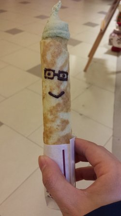 性价比真的不高啊~只能说尝鲜的店~一根蛋卷是十几块~蛮可爱的,不过味道就是蛋卷的味道~吃过冰激凌蛋卷~蛋卷里加了冰激凌~还用巧克力酱做了可爱的表情~味道不错,不过太贵了,适合给小朋友买来吃吃~查看更多
