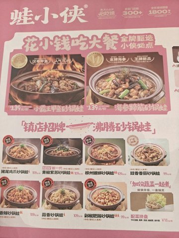 小霸王甲魚砂鍋牛蛙 / 新一代青椒紫蘇砂鍋牛蛙 / 木薯糖水 / 鐵闆蝦仁炒面 / 豬尾巴雞爪砂鍋牛蛙 / 香辣幹鍋牛蛙