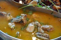 现在吃稻香蛙变得越来越流行了,因为营养丰富,口味又嗲的关系吧。这家在东方路近南码头路上,一般不太回来的,一个朋友家附近,个么就索性找个地方吃饭。吃3斤送1斤,还行,价格不贵的说,选择了白汤的,口感比较淡,也鲜,里面的蛙肉品质还可以,个头蛮大的说;也有沙律牛排嘛,上面的色拉酱好多,稀饭,口味浓的,肉质还蛮嫩,不塞牙;手撕包菜还可以,再肉多一点,菜杠子少一点就好了,也有金桔茶啊,不错,解腻了。性价比可以,蛙肉多吃也不错的说。查看更多