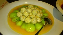 在中青旅大厦里面,整个二层都是,环境还不错,服务也是非常到位,进门领到餐桌上,去洗手间还会带着过去,还会领你回座位。这里的川菜做得更是精致,大家都吃的赞不绝口,最受欢迎的是那个三螺演义和咖喱皇大虾;三螺演义,上来一看很有气势,一个大木头船,占了三分之一的桌子,下面都是冰,上面是切好的螺肉放在海螺里面,配了芥末跟酱油的汁,味道非常美味。咖喱皇大虾,咖喱正宗浓郁,就是虾线没有剔干净,有损形象。虾很大,和龙虾差不多大哦,不过感觉太大而不入味,随菜附赠的一盘蒜蓉面包很好吃,把它泡在咖喱汤里就更好吃。…查看更多