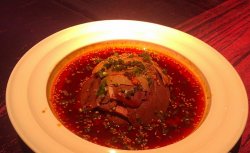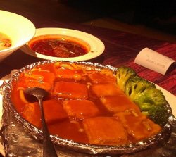 这个店位于东城区东直门南大街5号中青旅大厦2楼。整个餐厅是暗色调的,显得非常的私密优雅。点了石锅家常豆腐,和两倍山楂汁。豆腐外表应该是炸过,有点干干的有嚼劲,里面还是嫩的。山楂汁用玻璃杯装着,是店里用山楂熬的,入口绵软,酸度明显,慢慢的回味有一点点甜味而且是山楂自带的。查看更多