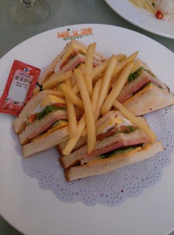 隐藏在小胡同里的一家店,店面的一点都不显眼,牌子挺大,可惜是白色的底色,在周围一排排的红牌子里很容易被忽视,每次想找这家店都得仔细看着,不然很容易走过的看到说是新推出一个三明治,就抱着试试的态度点了一份,一份12元,本以为会是像桃李的那种三明治那样的,结果不是,使用土司做的,三片土司夹了两层,有煎蛋,火腿,黄瓜皮,生菜,还有吉士汉堡里吉士那种的东西,然后还有一点点薯条,我当时看到这个土司的时候就已经没报希望了,吃了一块之后,果然啊,味道非常之一般,淡淡的,什么味儿也没有,那个薯条倒是蛮香的,后来又那个所谓的汉堡蘸着番茄酱吃,味道还可以,这个三明治啊太失望了,关键吧,最外层那个土司,真心觉得好糙,外面的那个皮都觉得好硬,又不是全麦的,吃着就觉得干巴巴,难以下咽啊…查看更多