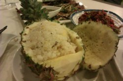 蜜桃餐厅给我的感觉就是香甜 恩 就是这样 这家餐厅的酸汤鱼很令我回味无穷 每每去都要点上这道菜 很开胃 菠萝饭很好玩 外观上就是一个菠萝挖开来把饭菜放进去的 很有创意 蕉叶肥牛也不错 有独特的蕉叶香 口感很好 很入味的 炒汤圆木有吃到 怕吃下去了太腻了所以都木有点到 倒是点了其他几样肉菜 都是爱吃肉的盆友 大家在一起聚聚餐真的很开心查看更多