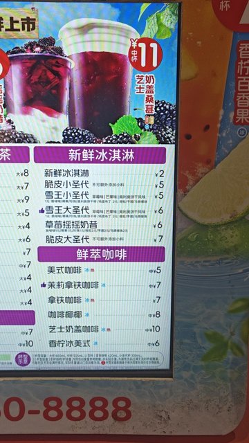 草莓搖搖奶昔 / 黑糖珍珠大聖代 / 奧利奧雪王大聖代 / 冰淇淋四季春 / 冰鮮檸檬水 / 滿杯百香果