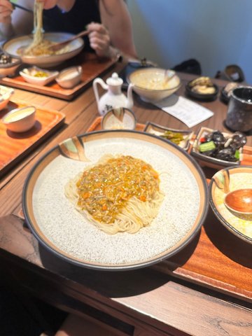 👨🏻🍳蟹叄寳·蟹黃面(皇庭中心店)📍福田街道崗廈社區福華路350號崗廈皇庭中心102L1-2 「超好吃的蟹黃麵!!😻」 我們三點多到達,店內當時5-6枱客人,可是店面只有一位女侍應。但是這位女侍應很勤快,服務很好,一直工作仍然保持笑容滿面,辛苦了🥹🫶🏻 一上座就遞上兩杯薑茶(雖然味道偏淡),陸續還會幫我們添茶🫶🏻 👍🏻🍽️招牌蟹黃金撈 ¥98/份米飯、拌麵各叫一份,個人較喜愛拌麵🤤拌麵還可以無限添‼️😆 木耳小菜好好吃!!另一份豆角就有點咸🙈爆多蟹黄😻拌麵本身帶有少少味道,很香口,麵身煙靭有嚼勁,是好吃的拌麵😋我們整個蟹黃金撈倒進飯/麵,份量剛好,不會太咸,就好好吃🤤 👍🏻🍽️蟹黃湯包 ¥36/份超香蟹黄,一口爆汁,超香😋👍🏻🍽️花雕醉蟹 ¥98/2隻是大閘蟹😻😻凍食。有一隻壞了,女店員急忙幫我們換一隻,又連忙道歉🥺🙇🏻♀️超好的本來吃蟹就預料到有機會吃到壞🫶🏻大閘蟹超鮮甜,而且爆多膏🥹🥹超好吃!!omg!! 這家必定再安可😆🫶🏻 #蟹叄寳蟹黃面 #蟹叄寳 #蟹黃面 #深圳美食 #深圳蟹黃面 #arigato_深圳 #arigato_福田…查看更多