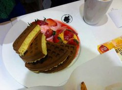 看微博推荐的,据说松饼做的很好吃,于是找到一家就来尝尝。上海有很多家分店,我看的是另外一家,这边离我比较近,应该味道都是差不多的吧。环境不错,适合闺蜜或者情侣下午来小聚,号码牌也是可爱的小熊,女孩子应该会蛮喜欢的。饮料不算很贵,要了一份奶茶和一份冰咖啡,奶茶略微有些甜,冰咖啡不错。草莓奶油松饼,很细腻的那种外皮,颜色是那种焦焦的感觉的,不是太酥,有点像是蛋糕的口感,这个价位来说算是很不错的了。查看更多