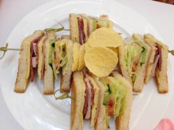 中午和同事一起去吃的,很惊喜还打了6折,还是很意外的呢~就是中午生意不错,因为现在新加了午市套餐,不过很可惜没有松饼的套餐,我们要了三明治和甘美地瓜还有色拉,三明治很快就上桌了,一份三明治使用竹签串成了4个,很人性,用手哪住竹签就能吃了,里面是火腿片,生菜,鸡蛋,黄瓜还有面包片,还是很齐全营养搭配也不错呢!只是不知道为什么要在上面放几片薯片,也是美观的作用吧!甘美地瓜是我最爱的小零食,粗粗的地瓜条,炸的又酥又香,撒上甘梅粉,酸甜适中~查看更多